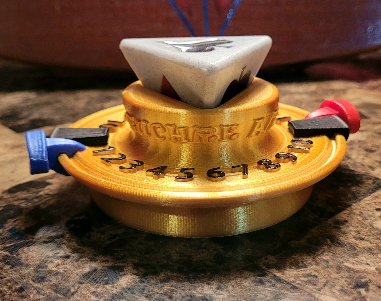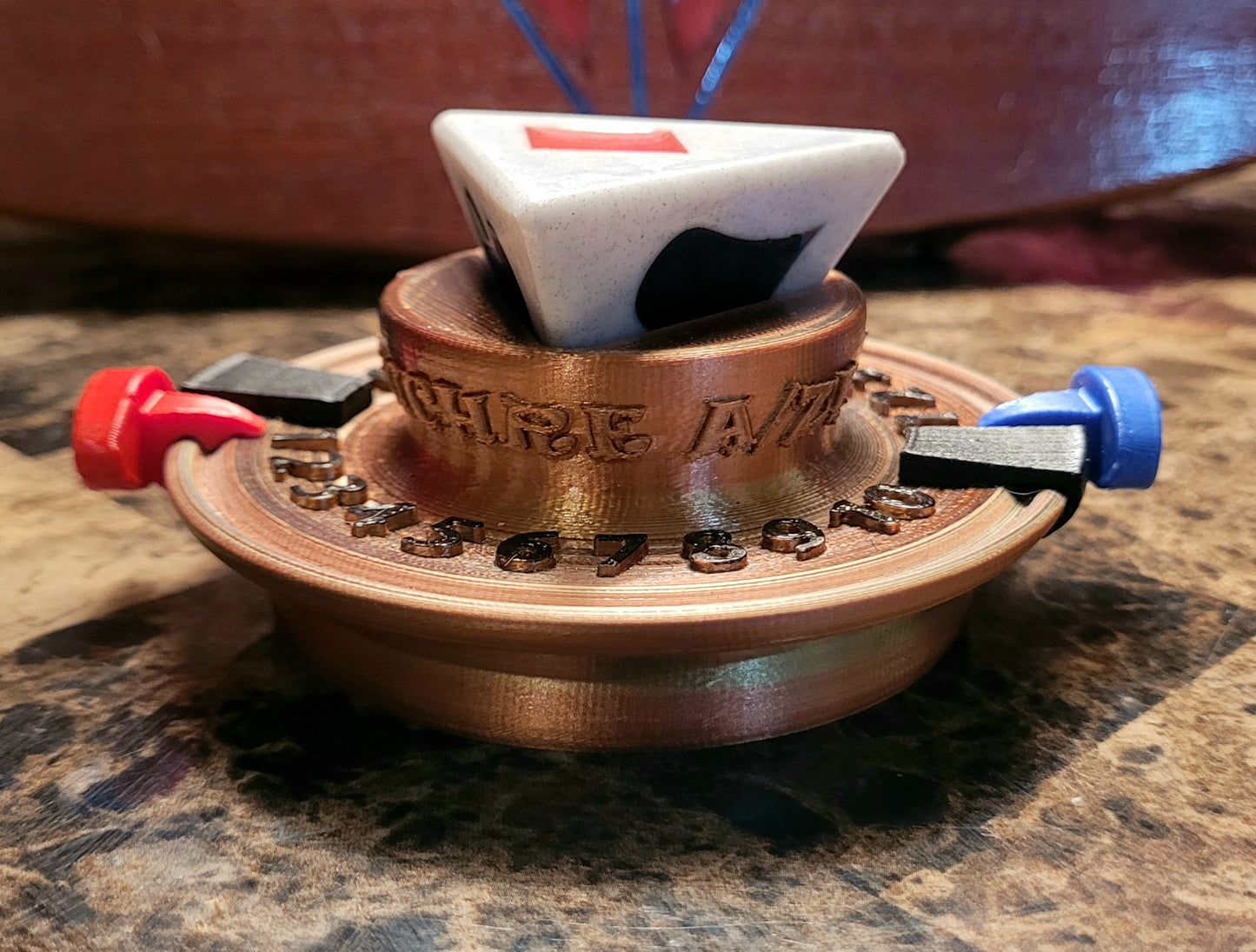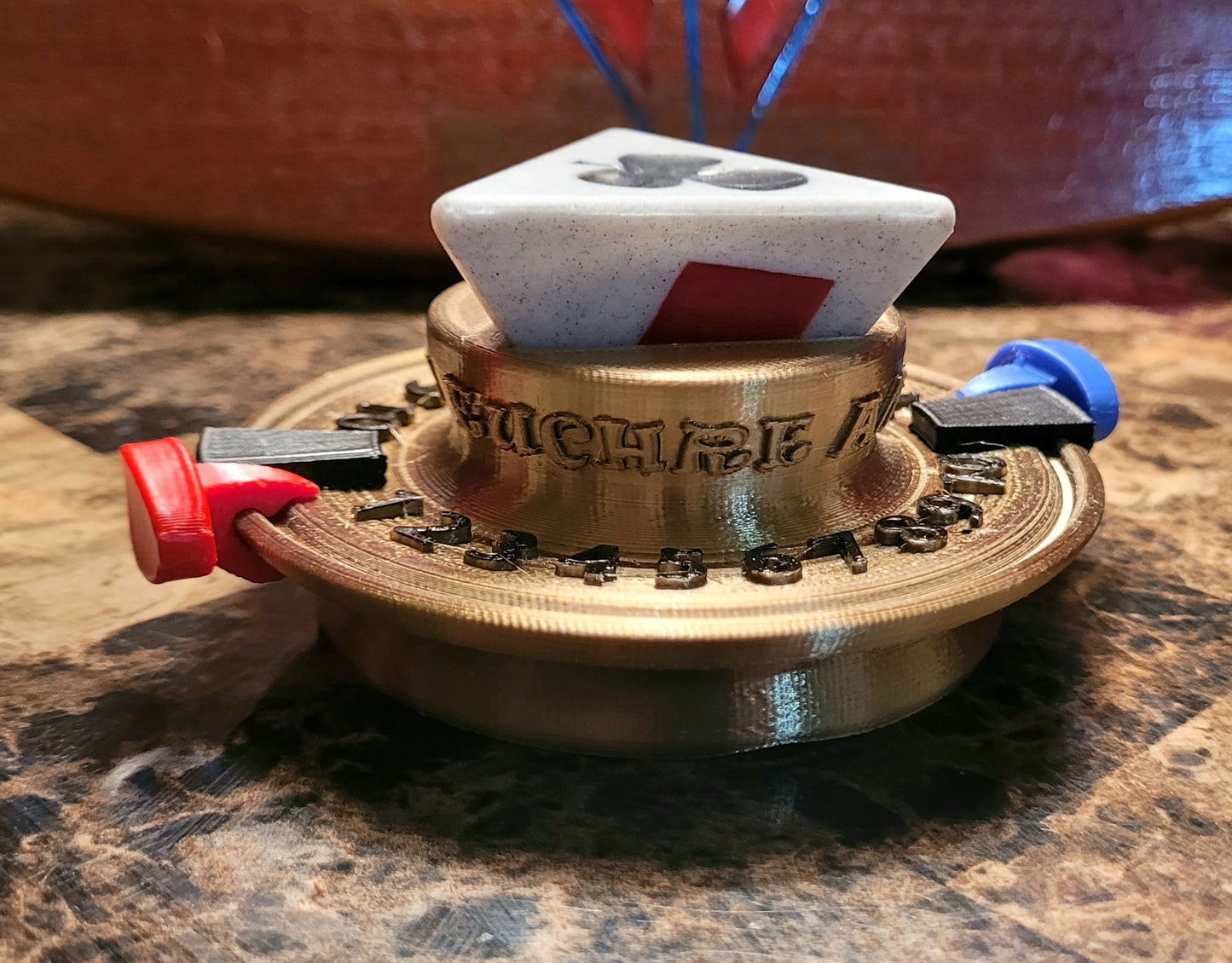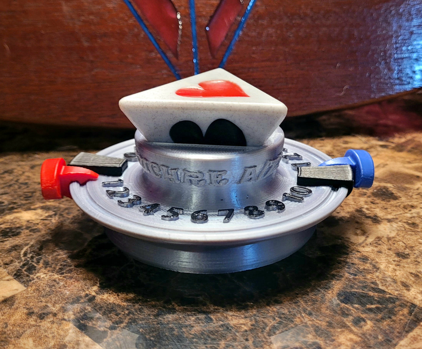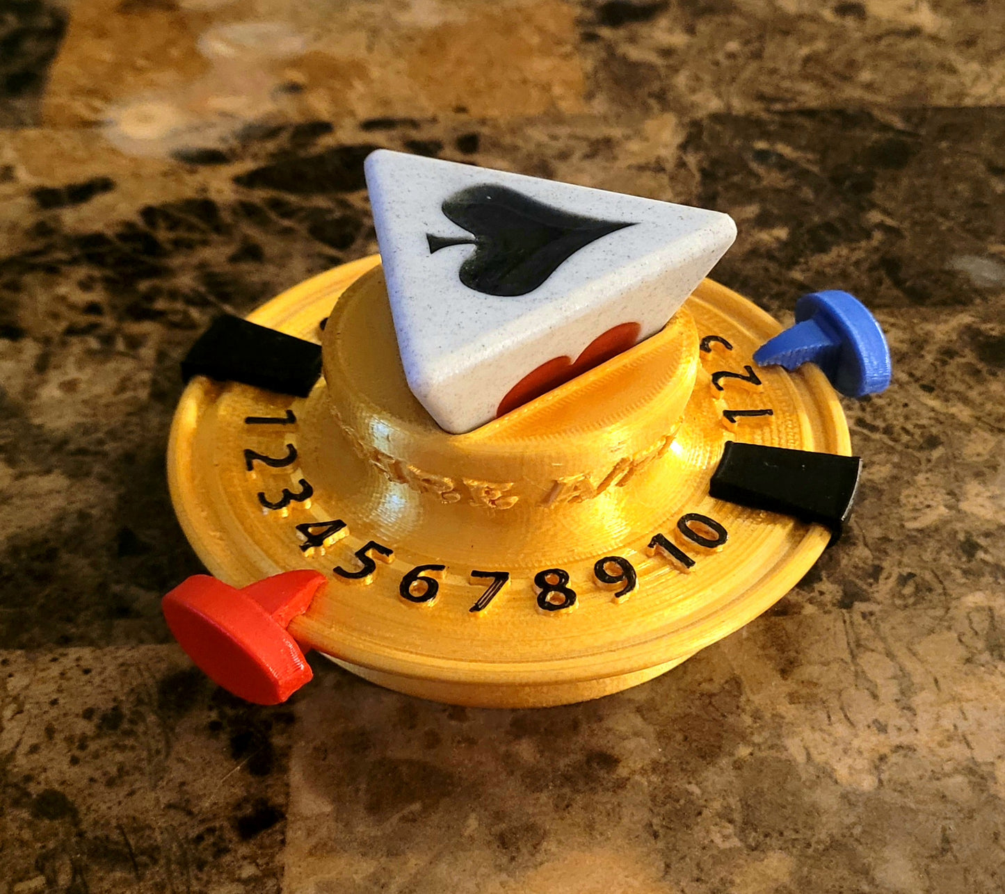This original Bozeman's WaP Shoppe design is 3D-printed in environmentally friendly PLA and features epoxy filled suits, as well as two contrasting colored (red and blue) thumb sliders to keep score.